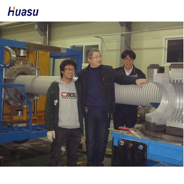 Qingdao HUASU Company suit de près le développement de l'industrie en plastique de machines dans le monde entier sous un esprit de deploitation et d'innovation. Différents genres lignes d'extrusion de PE, de PVC de tuyau (Ф16-Ф1200mm) gagner une réputation très bonne sur les marchés domestiques et extérieurs avec leur efficacité de haute qualité et étonnante. En tant que société la plus tôt qui a avec succès développé et a adopté la structure horizontale avec le type à chaînes la chaîne de production ondulée de tuyau de double mur de transmission qui peut faire le diamètre de tuyau de Ф75 à Ф200, HUASU toujours pour garder la principale position dans ce domaine et a gagné des accomplissements exceptionnels très bons pendant ces années.