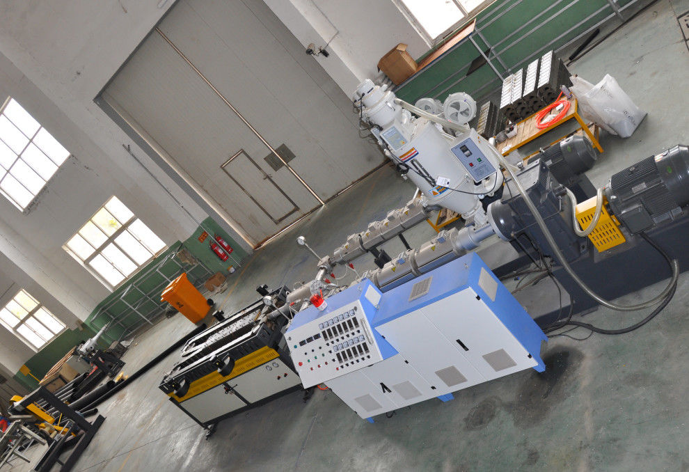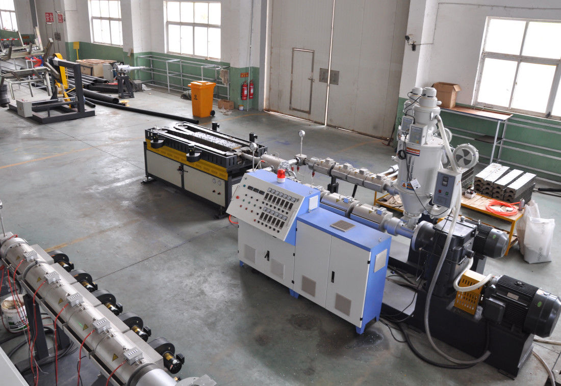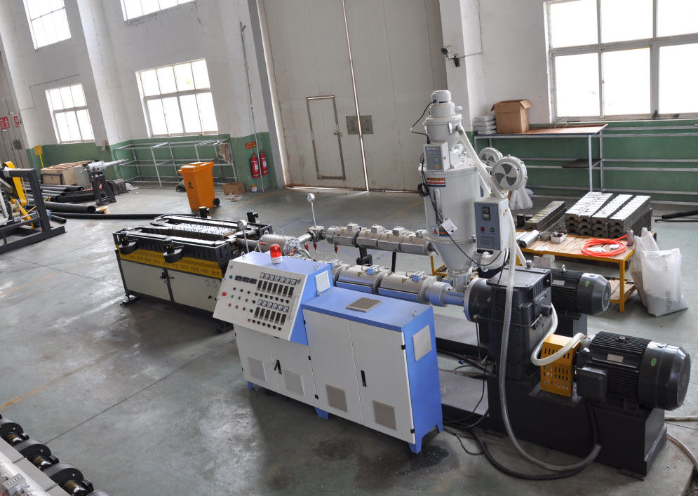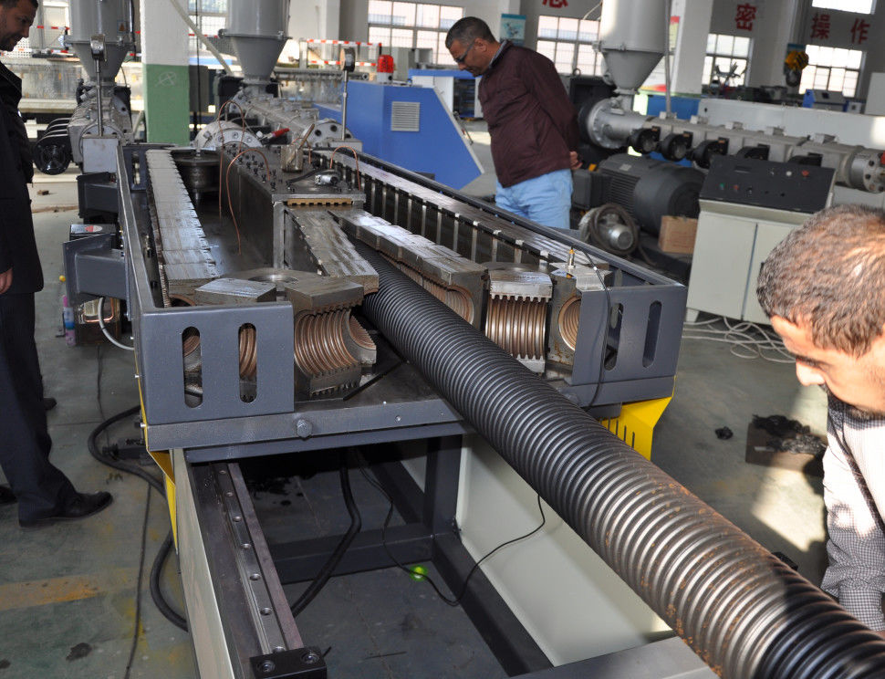 Cette ligne ondulée d'extrusion de tuyau de mur de signle contient principalement l'extrudeuse, machine de formation ondulée, meurt des blocs de tête et de moule, équipement de refroidissement, comptant la machine et l'éolienne. Elle peut sans interruption produire beaucoup de genres de tuyaux ondulés à mur unique de diamètre.