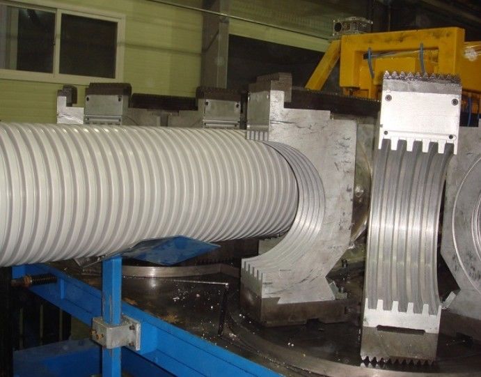 La machine de moulage adopte la pleine structure fermée horizontale, il est facile utiliser qu'et élégant dans l'aspect. Par le module de transmission de vitesse, le coffrage est refroidi par l'eau, les produits sont refroidis par avion, et la voie de moulage est longue, de sorte que le tuyau ondulé produit ait la vitesse de moulage rapide, forme ondulée uniforme, à coutures cohérentes et les murs intérieurs et externes lisses lissent, qualité stable, et peuvent maintenir l'opération ultra-rapide.