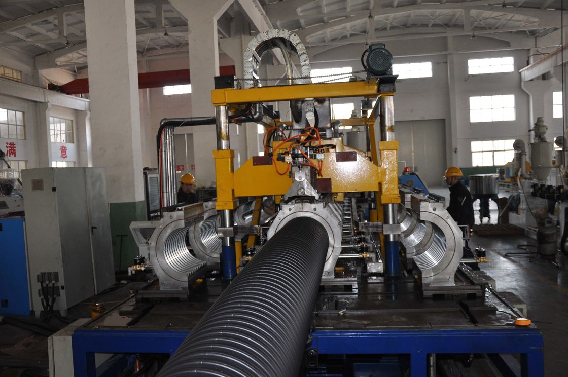 La matière première + → de alimentation de mélange de dessiccateur de trémie de → de machine de vide de → de → additif boudineuse à vis simple pour le matériel de PE/PP/double boudineuse à vis pour l'extrusion de tuyau de material→ de PVC meurent + tuyau ondulé formant le die→ formant le transport de machine→ outre de la découpeuse de → de machine
