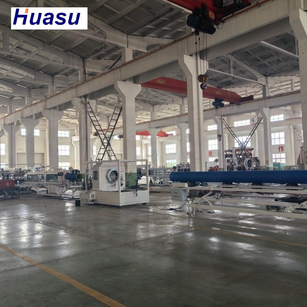 Ligne de production de tuyaux ondulés à double paroi haute performance avec systèmes de refroidissement à air et à eau pour une fabrication efficace de tuyaux.