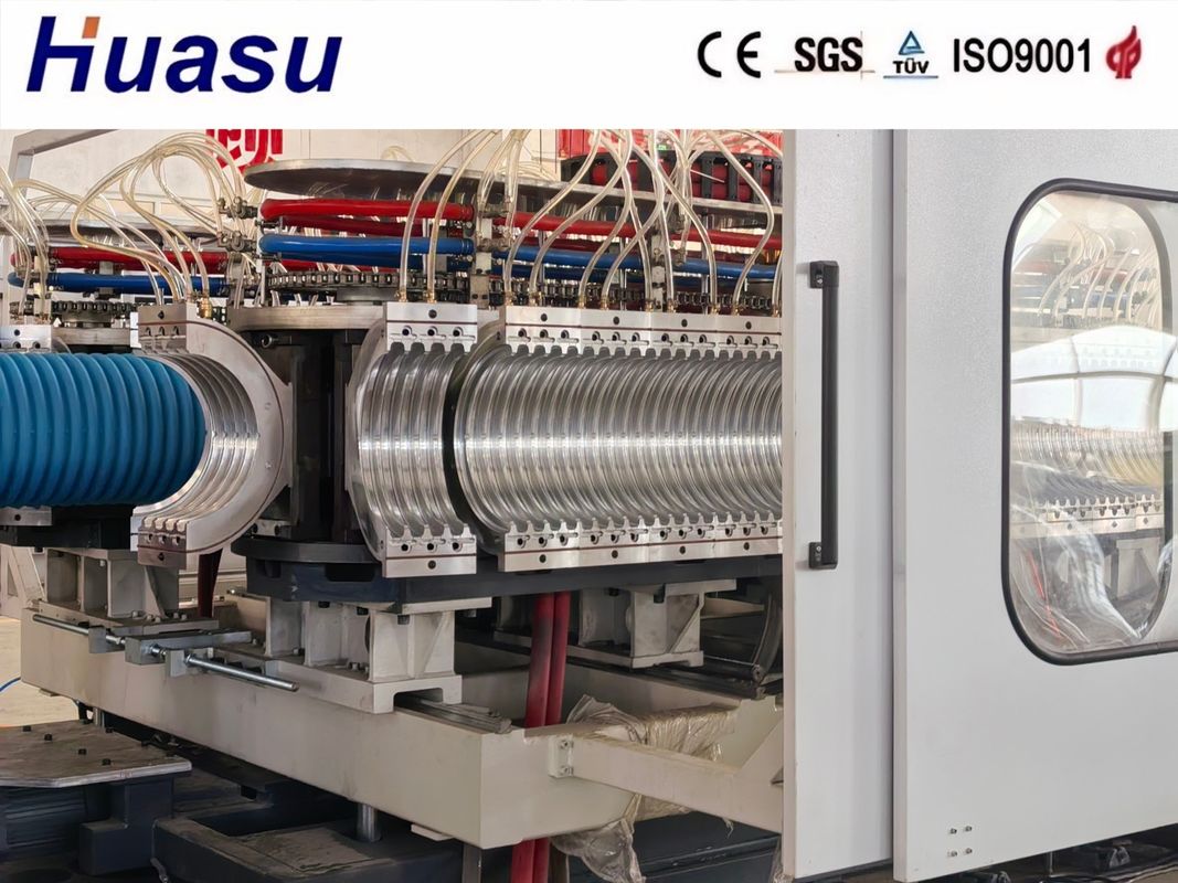 La ligne de tuyaux ondulés à double paroi représente la 3e génération de produits améliorés de Shandong HUASU. Par rapport au modèle précédent, le débit de l'extrudeuse et la vitesse de production des tuyaux sont considérablement augmentés de 20 à 40 %.