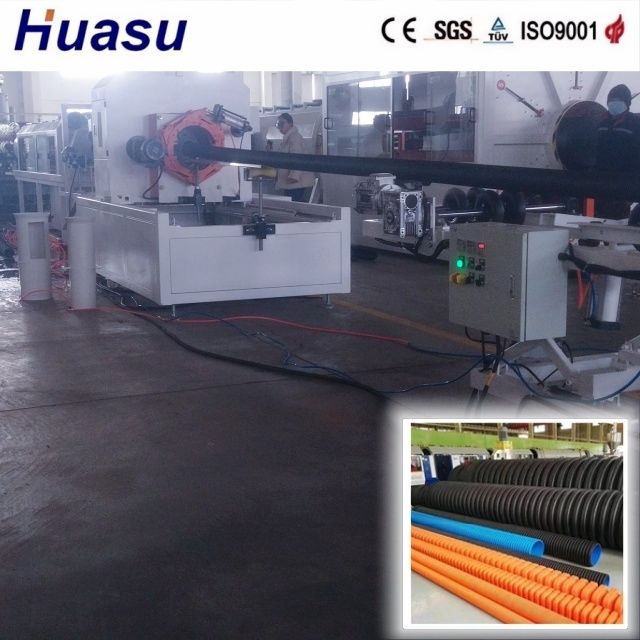 La ligne de tuyaux ondulés à double paroi représente la 3ème génération de produits améliorés de Shandong HUASU, avec une augmentation de 20 à 40 % du débit de l'extrudeuse et de la vitesse de production par rapport aux modèles précédents. Ce système permet le biseautage en ligne pour garantir des performances optimales des produits de tuyaux ondulés finis.Utilise le système de contrôle Siemens PLC.